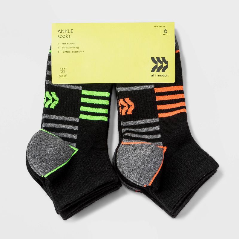 Kids' 6pk Ankle Socks - All In Motion™ Black M