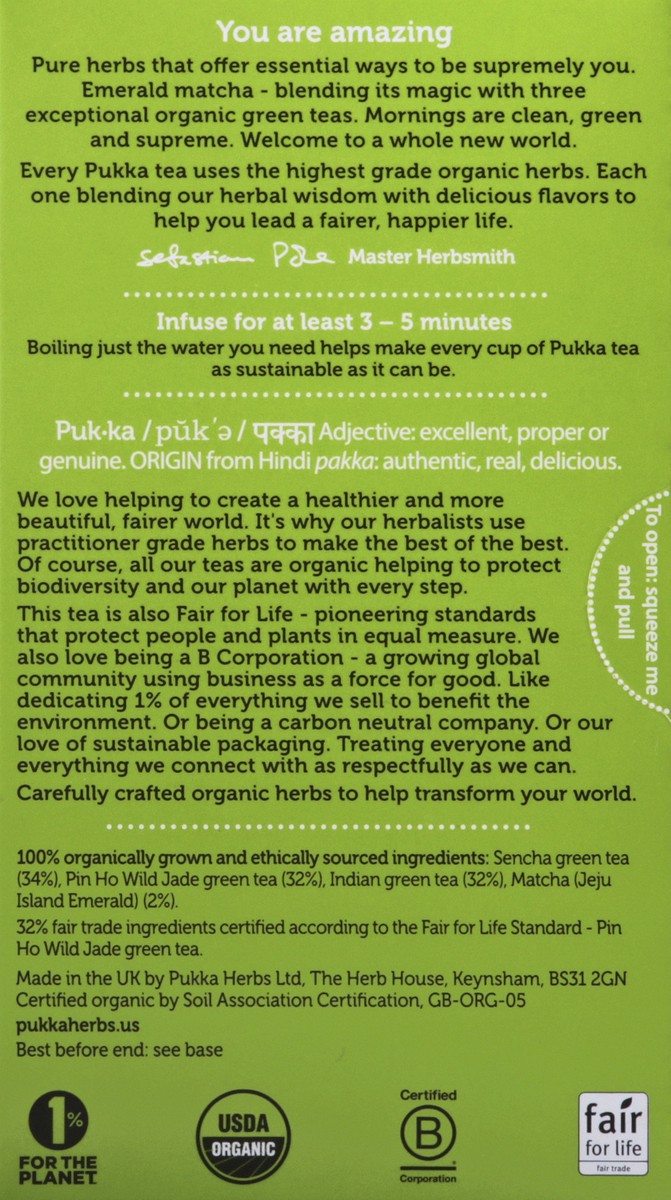 - Pukka Organic Herbal Green Tea is good news for replenishing your magical powers.This herbal tea is made with organic whole leaf green and the finest matcha powderMornings are clean