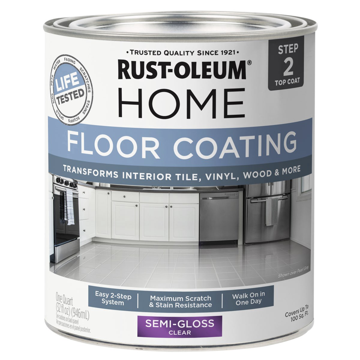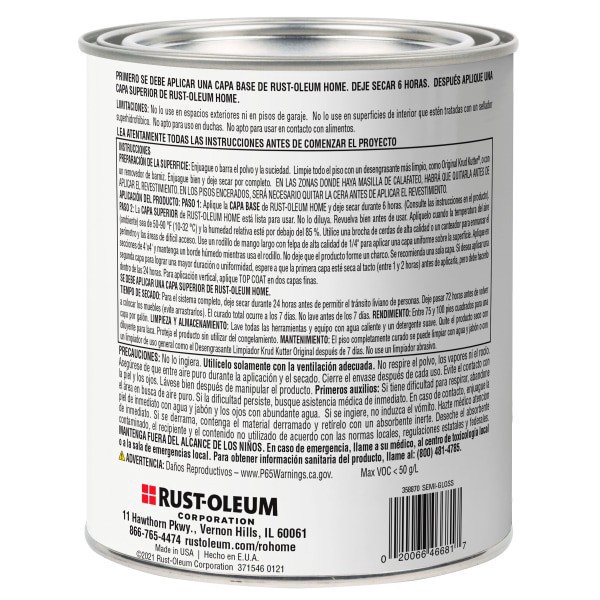 Rust-Oleum Home Floor Coating Top Coat, Quart, Semi-Gloss Clear