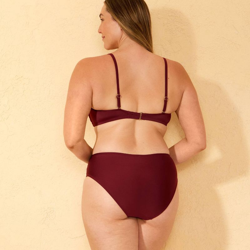 Women's Shirred Waistband Medium Coverage Bikini Bottom - Shade & Shore™ Burgundy S