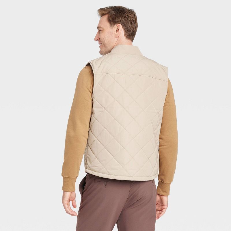 Keep your core cozy with this Puffer Jacket from Goodfellow & Co™. Made from midweight woven fabric and taffeta lining, this sleeveless jacket is designed in a solid shade and adorned with a decorativ…
