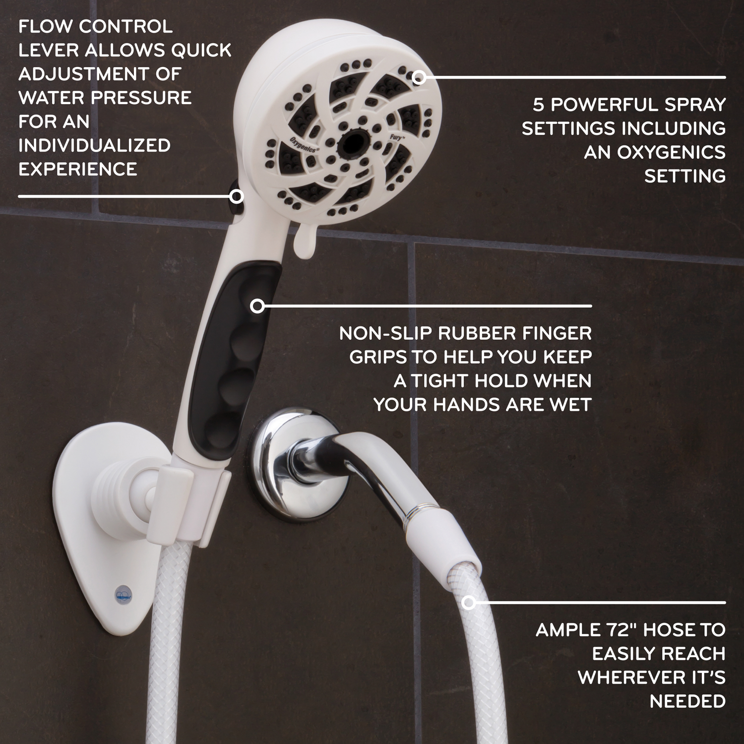 Digital Product Details: Designed specifically for high performance in RVs, the Oxygenics Fury RV handheld shower head kit is built for maximum efficiency. The Oxygenics spray setting works like a min…