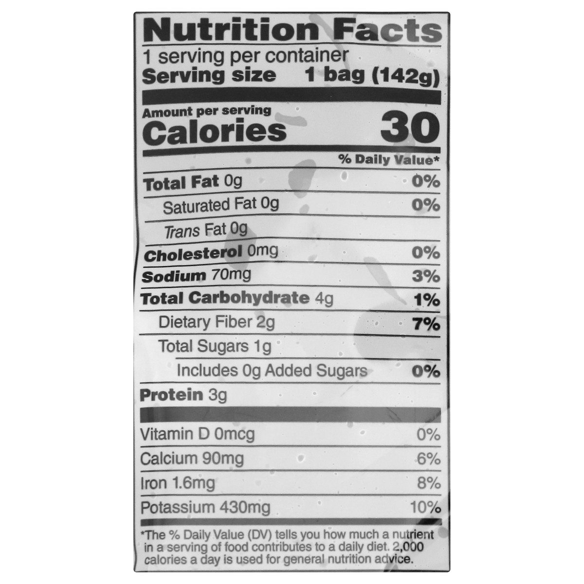 Per 1 Bag: 30 calories; 0 g sat fat (0% DV); 70 mg sodium (3% DV); 1 g total sugars. Baby lettuces. Baby greens. Contains no romaine. Washed & ready to eat. Delicious Quality from farm to table. Welco…