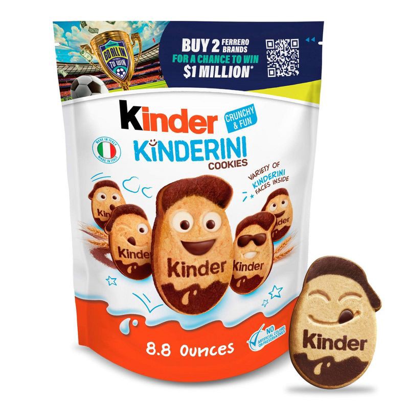 - FUN COOKIE: Enjoy Kinder shortbread cookies in a 8.8oz resealable bag, each with playful Kinderini faces that turn every crunchy bite into a smile