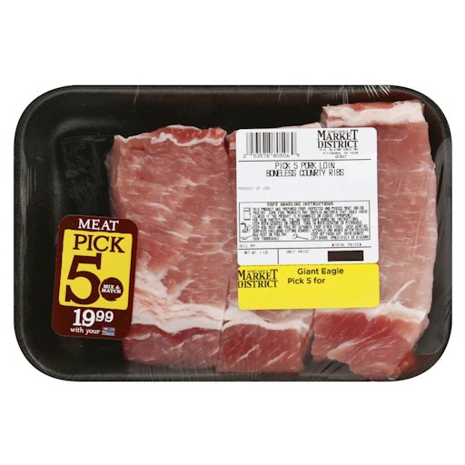 Enjoy tender and flavorful boneless pork loin country ribs with Giant Eagle's Pick 5 deal. Perfect for family dinners or cookouts, these ribs offer a savory taste experience. Easily prepare them in th…