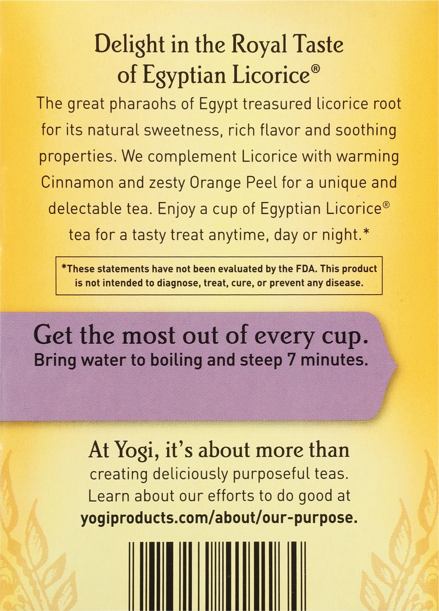 Yogi Tea Egyptian Licorice, Caffeine-Free Organic Herbal Tea Bags, 16 Count