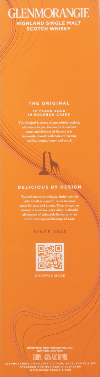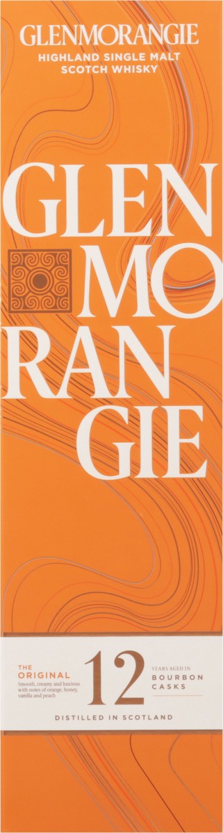Smooth, creamy and luscious with notes of orange, honey, vanilla and peach. Glenmorangie highland single malt scotch whisky. 12 years aged in Bourbon casks. The Original: 12 years aged in bourbon cask…
