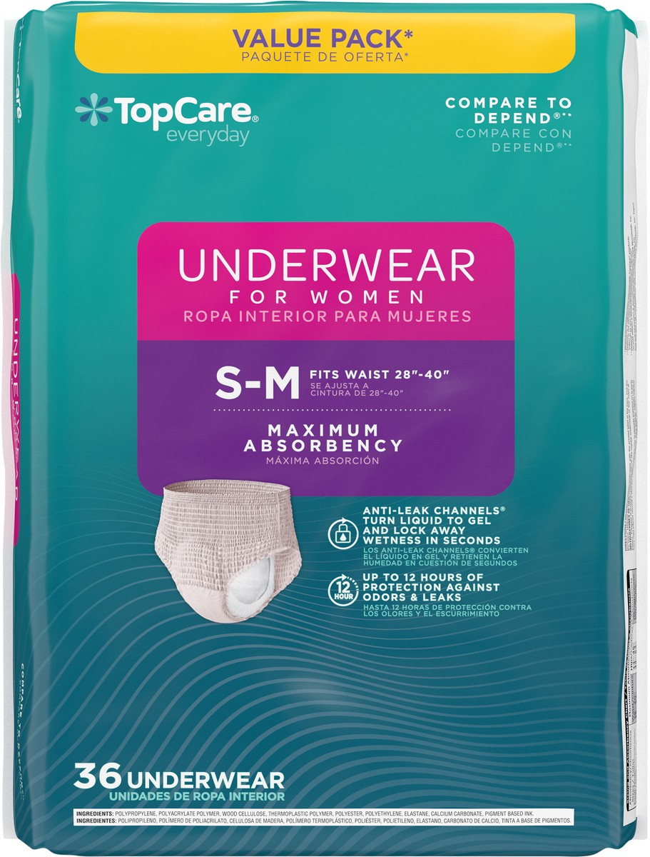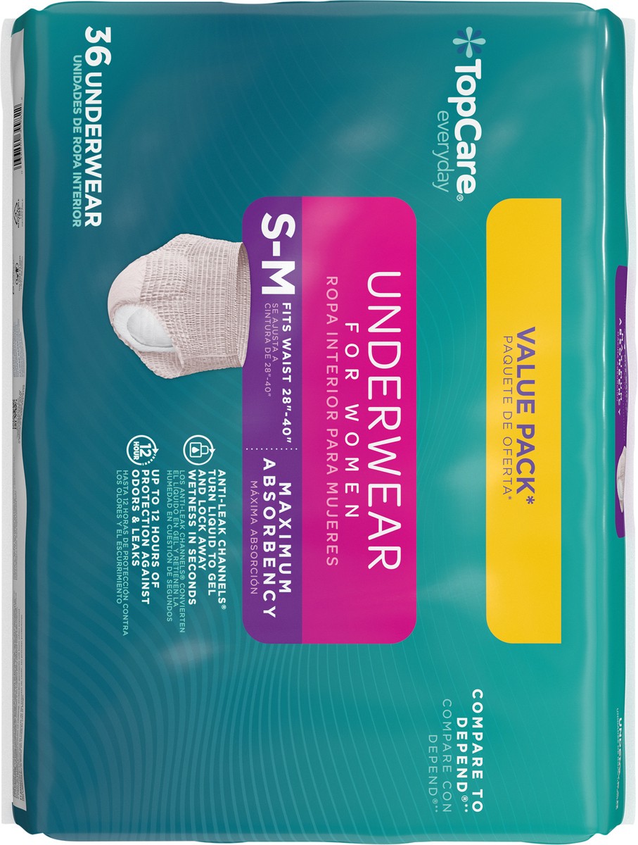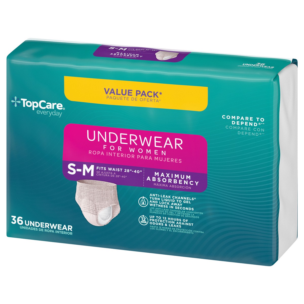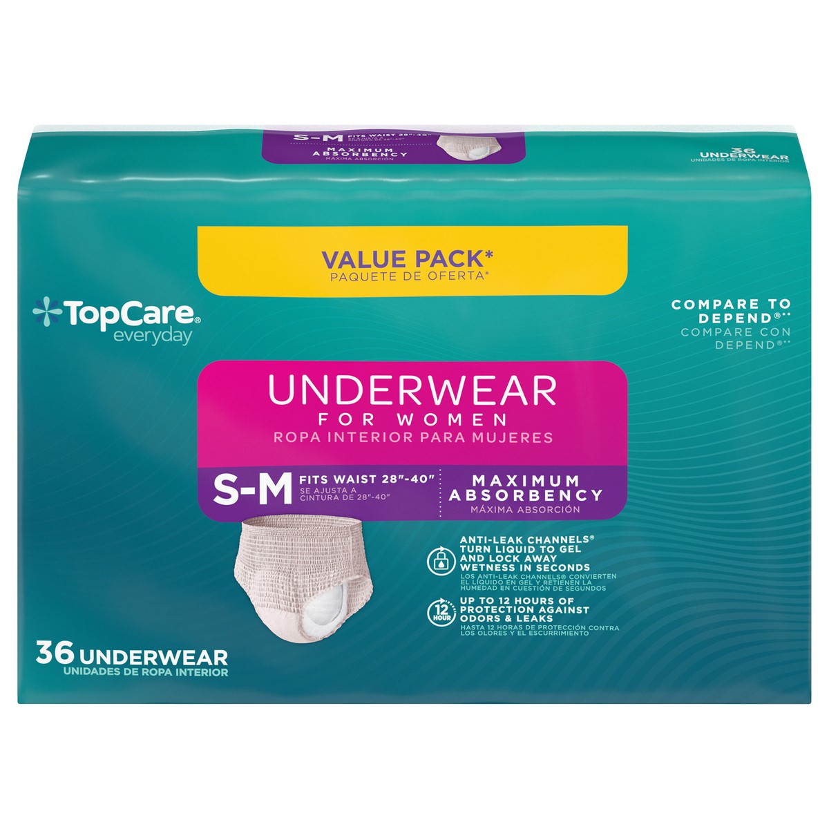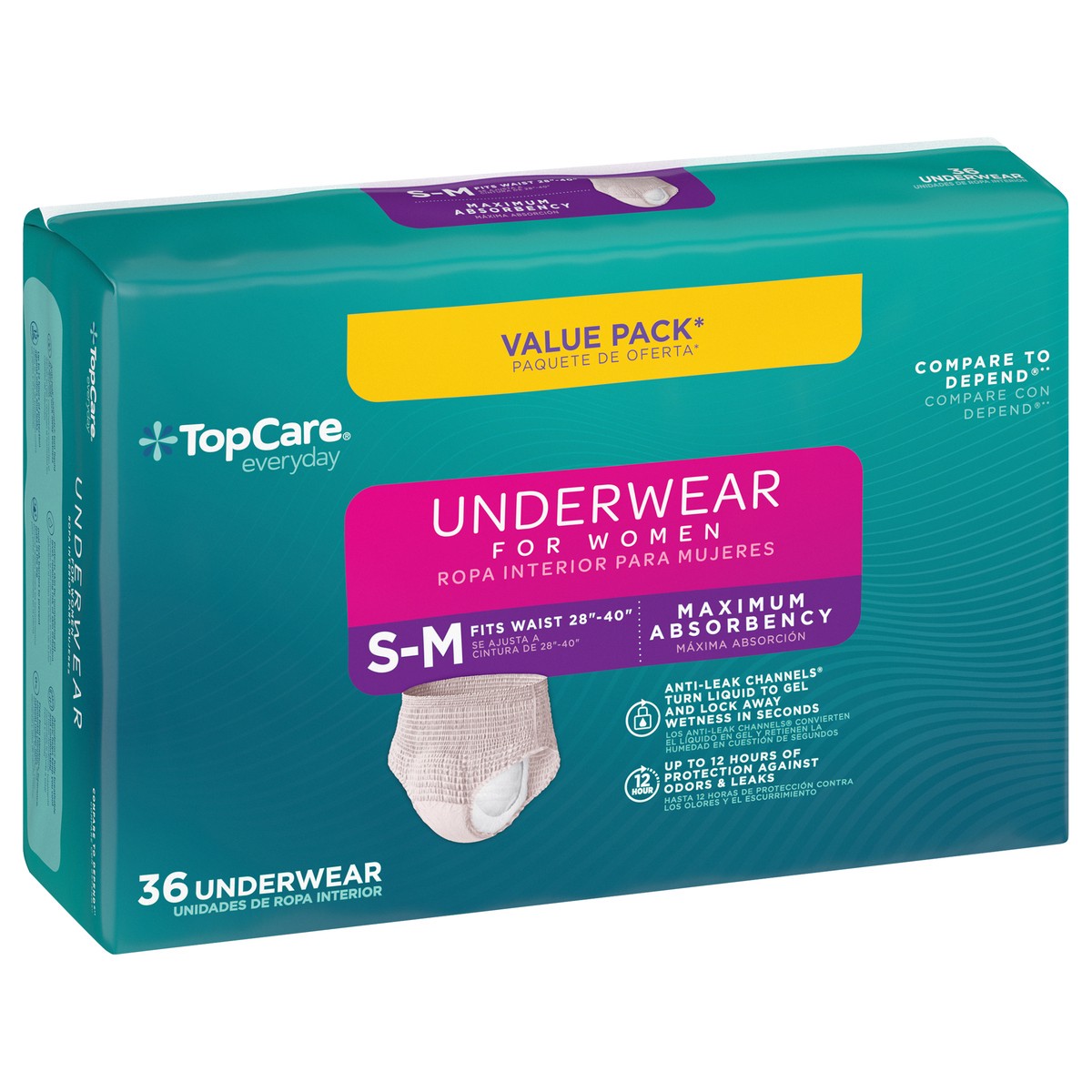 TopCare Everyday Maximum Absorbency Underwear for Women S-M Value Pack 36 ea