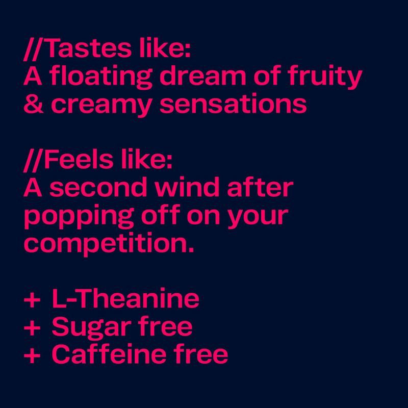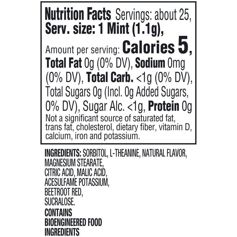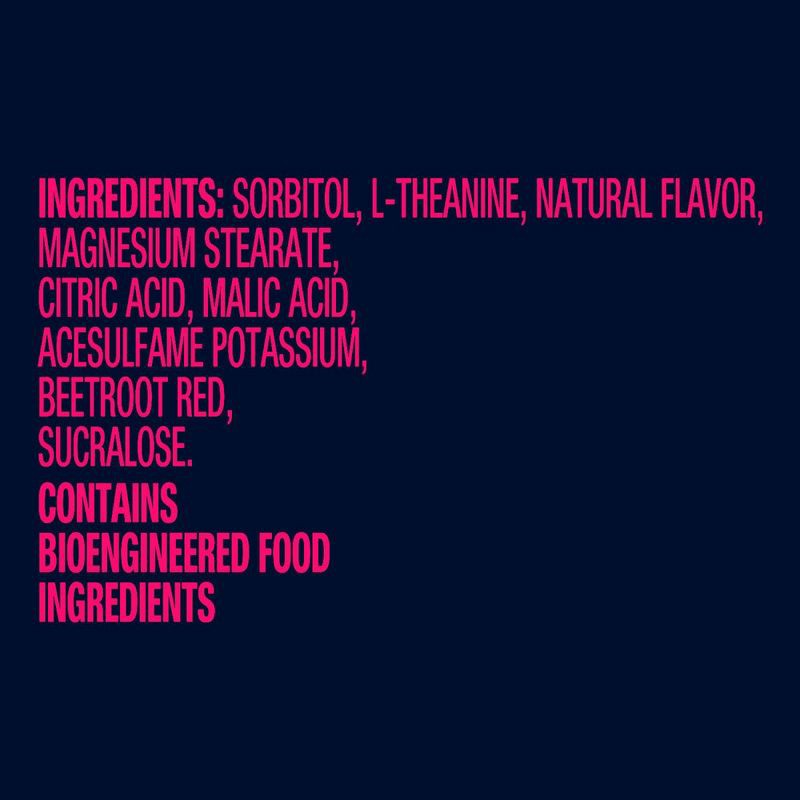 SORBITOL, L-THEANINE, NATURAL FLAVOR, MAGNESIUM STEARATE, CITRIC ACID, MALIC ACID a ACESULFAME POTASSIUM, BEETROOT RED SUCRALOSE 0