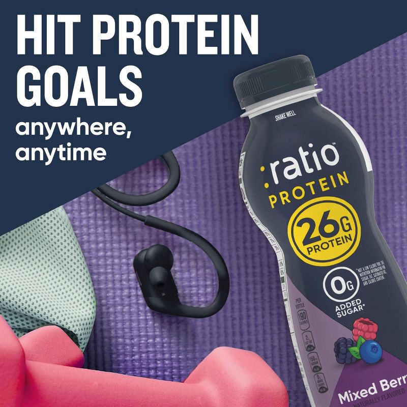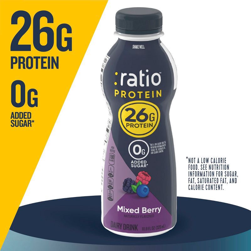 - CONTAINS: One 10.8 fluid ounce :ratio Protein Mixed Berry Flavored Dairy Drink