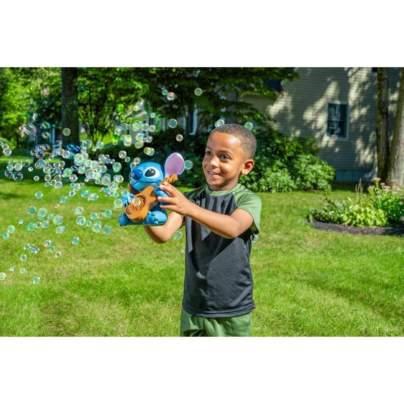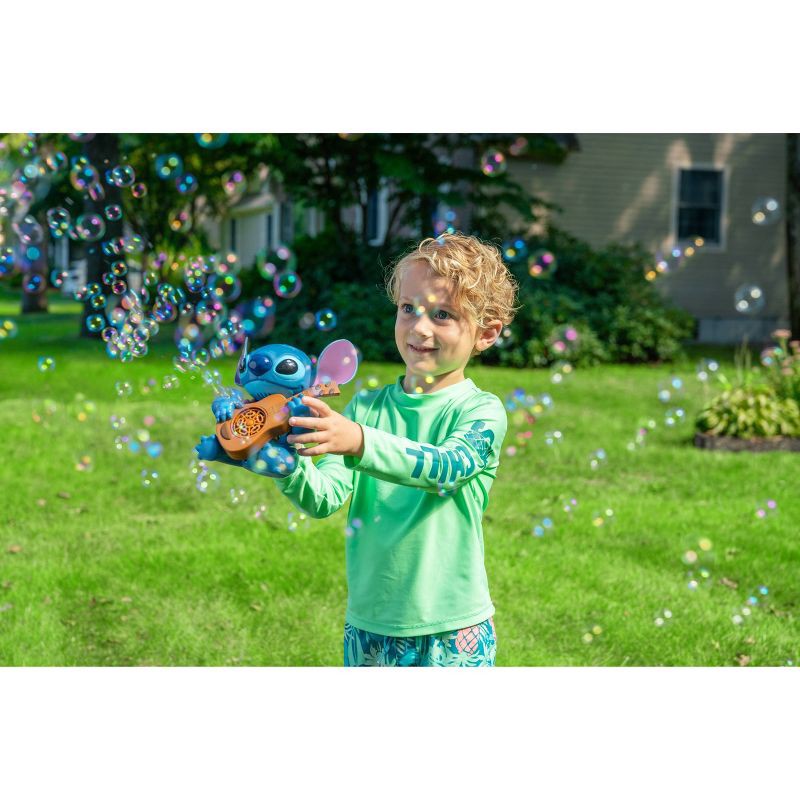 - The Stitch No-Spill Musical Bubble Machine is 2-in-1 play— plays music and blows continuous streams of bubbles.