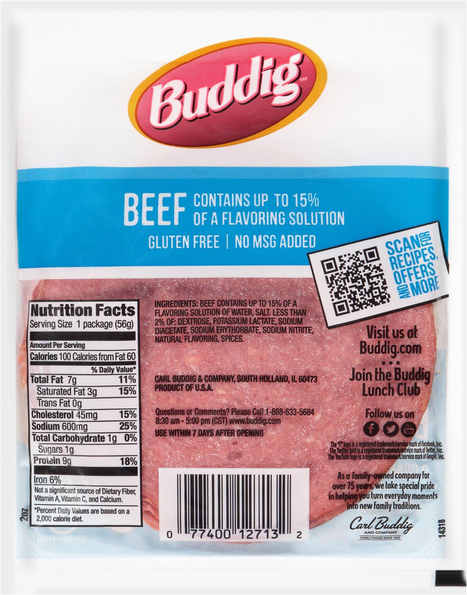 Beef Contains Up to 15% of a Flavoring Solution of Water, Salt, Less than 2% of: Dextrose, Potassium Lactate, Sodium Diacetate, Sodium Erythorbate, Sodium Nitrite, Natural Flavoring, Spices.