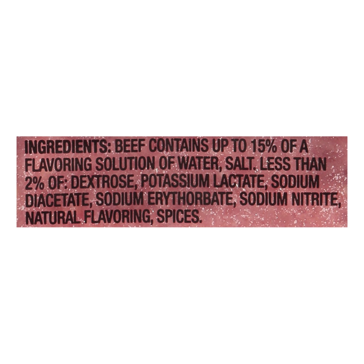 Beef Contains Up to 15% of a Flavoring Solution of Water, Salt, Less than 2% of: Dextrose, Potassium Lactate, Sodium Diacetate, Sodium Erythorbate, Sodium Nitrite, Natural Flavoring, Spices.