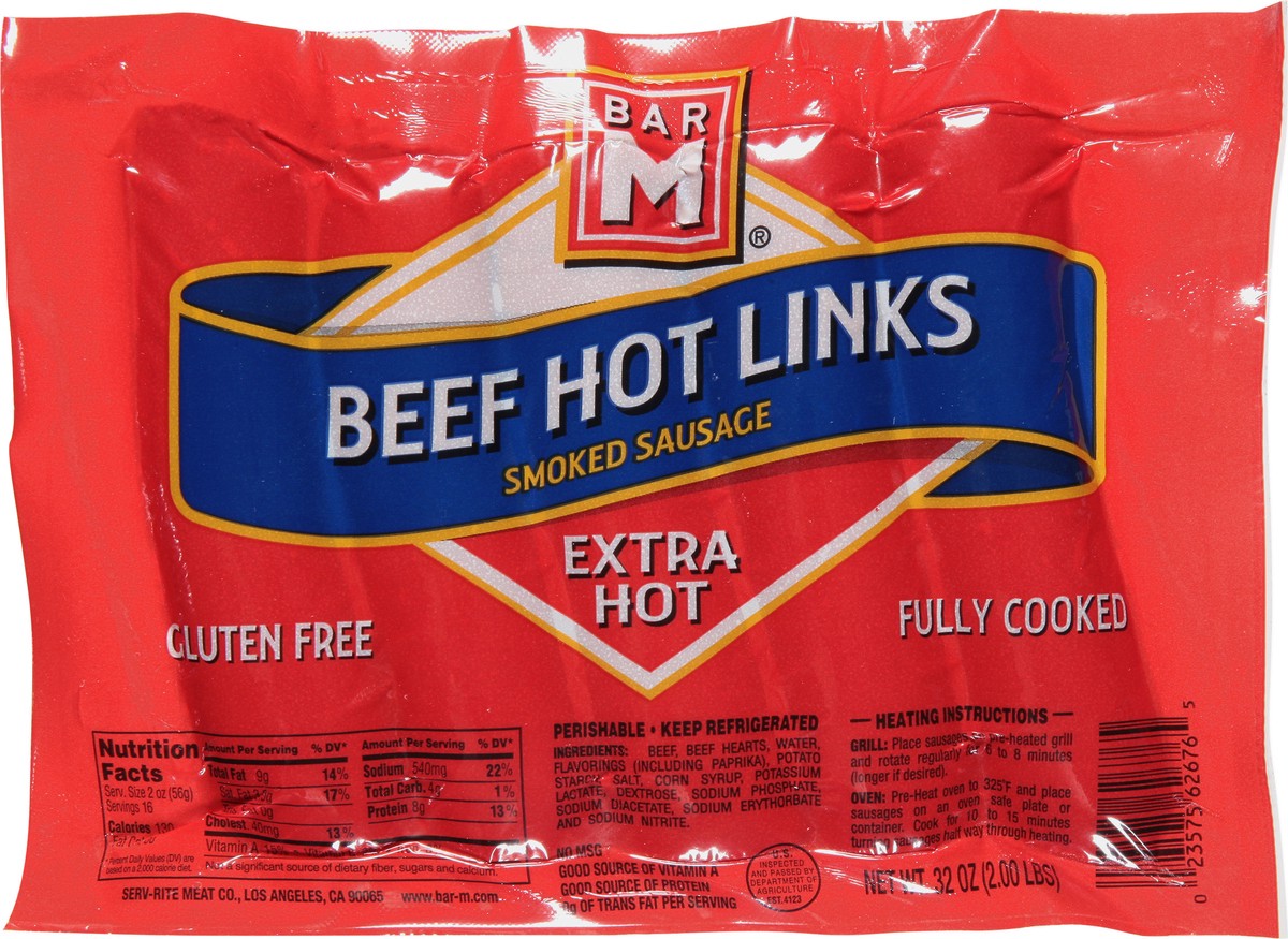 Bar-M Beef Hot Links Smoked Extra Hot Sausage 32 oz