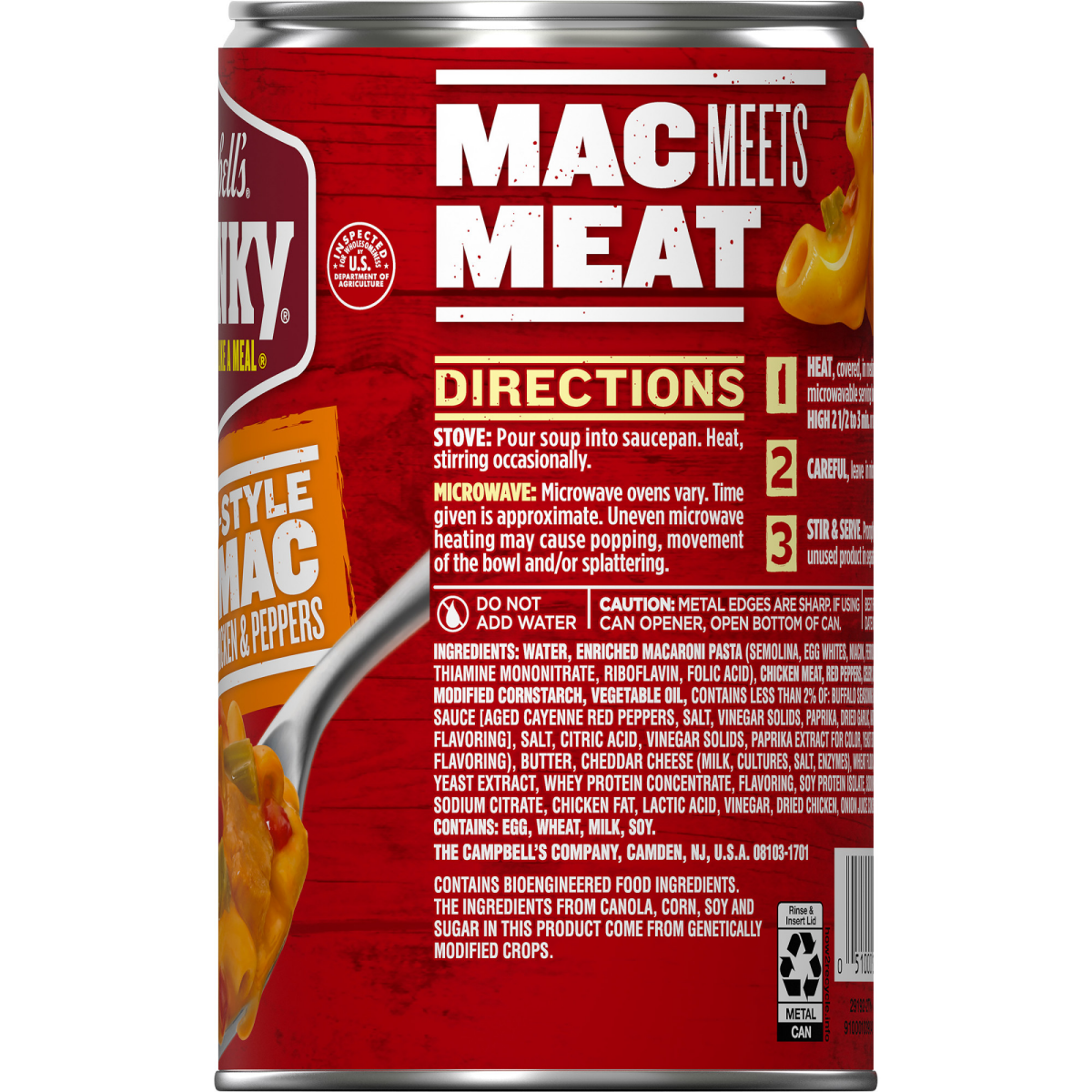 - With 18g of protein per can, this satisfyingly chunky chicken macaroni and cheese soup fuels even the heartiest of appetites