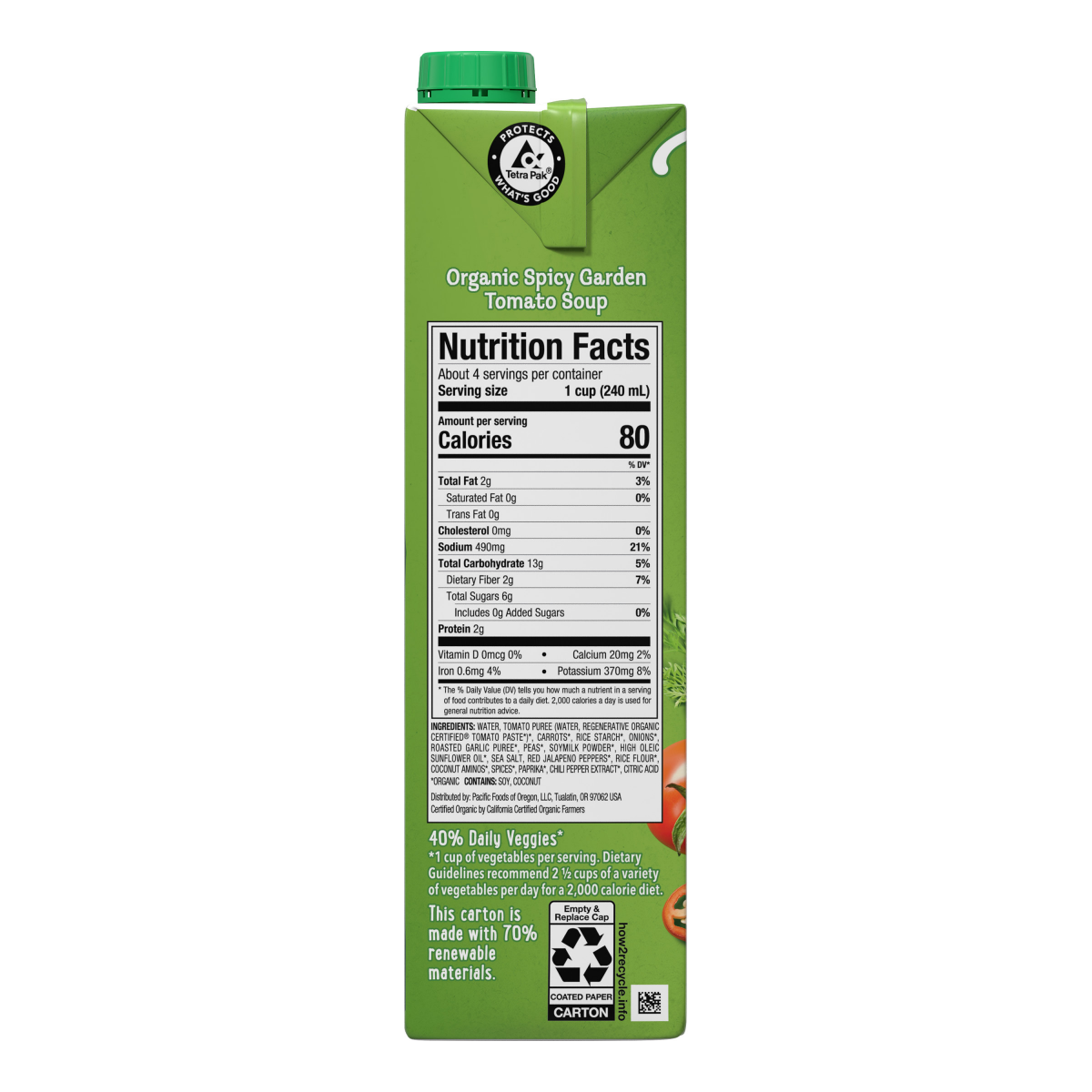 - One (1) 32 fl oz carton of Pacific Foods Organic Spicy Garden Tomato Soup