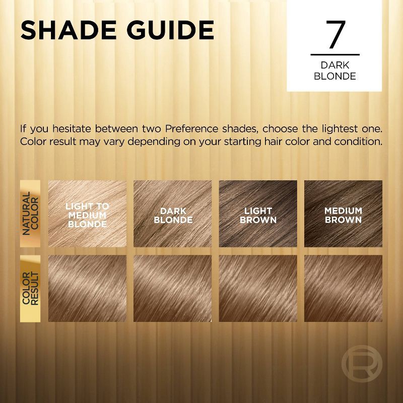 - Shiny, Luminous Dark Blonde Hair Color: Superior Preference Permanent Hair Color has been our true gold standard of color and shine since 1973; Available in over 50 luminous shades, ranging a wide spectrum from champagne blonde to rich brown and deep red