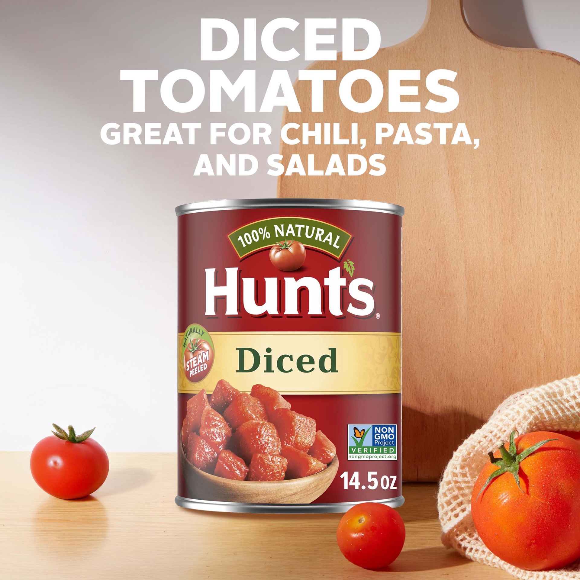 Get cooking with Hunt's Diced Tomatoes. Perfect in chili and soups, these diced tomatoes are a crowd-pleaser and pantry staple. From soups and appetizers to sides and sauces, these canned tomatoes are…