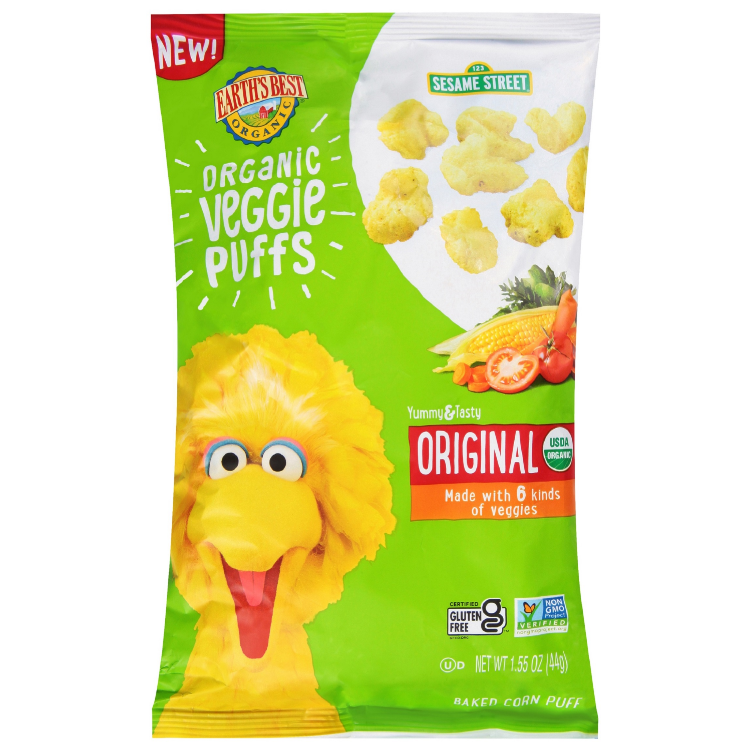 Toddler USDA Organic. www.earthsbest.com; www.sesamestreet.org 800-434-4246 Earth's Best Organic Veggie Puffs are made with organic ingredients grown from the earth--no artificial flavors or potential…