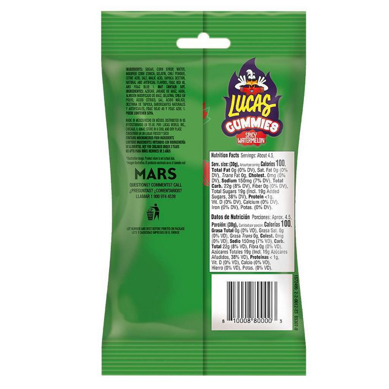 Your favorite Lucas® flavors now in fruity gummies! They are delicious watermelon fruity flavored gummies covered with spicy powder, a bold and exciting treat with a sensational fusion of sweetness an…
