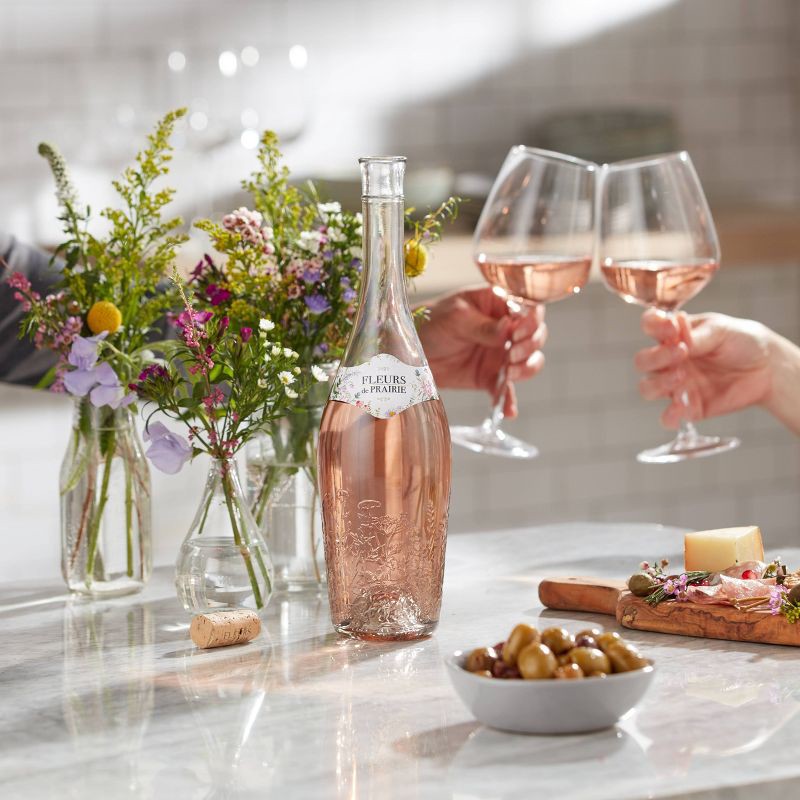 - One 750 ml wine bottle of Fleurs de Prairie rose wine
