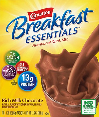 Carnation Breakfast Essentials Rich Milk Chocolate Nutritional Powder Drink mix is a powdered mix that makes a delicious breakfast drink the whole family will love—just mix with 1 cup of skim milk. St…