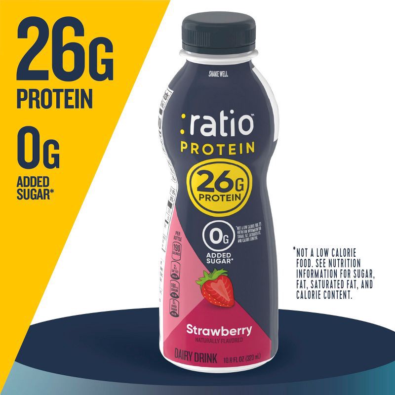 - CONTAINS: One 10.8 fluid ounce :ratio Protein Strawberry Flavored Dairy Drink