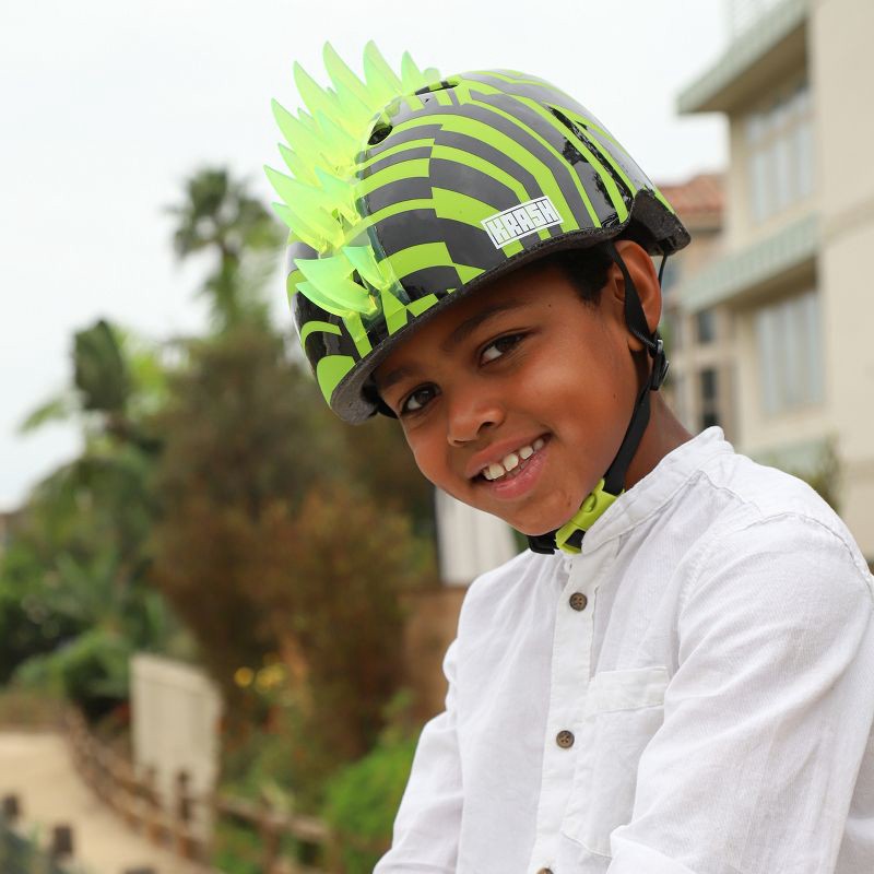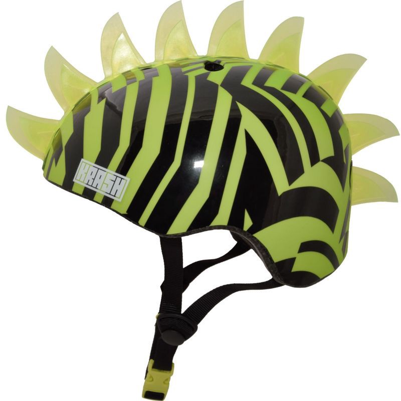 The Krash! Dazzle Green Mohawk youth size helmet has 5 LED lights that illuminate the green fin mohawk! The lights power on and off with a button located at the back of the helmet, and the lights can …