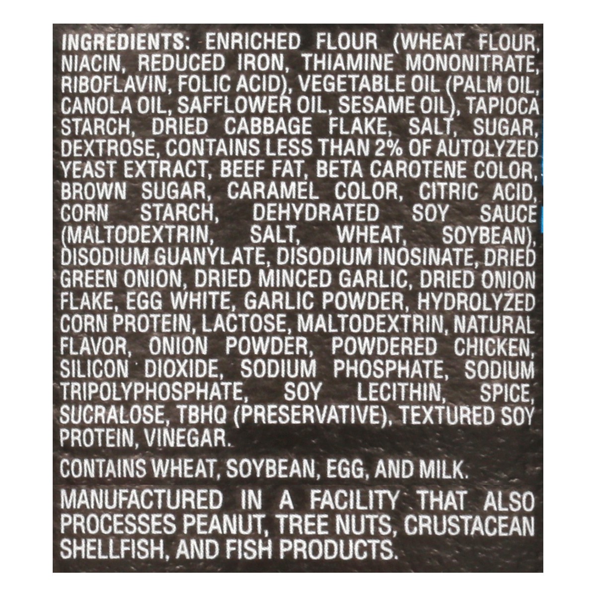 Enriched Flour (Wheat Flour, Niacin, Reduced Iron, Thiamine Mononitrate, Riboflavin, Folic Acid), Vegetable Oil (Palm Oil, Canola Oil, Safflower Oil, Sesame Oil), Tapioca Starch, Dried Cabbage Flake, …