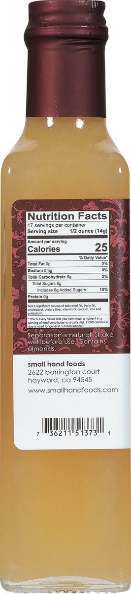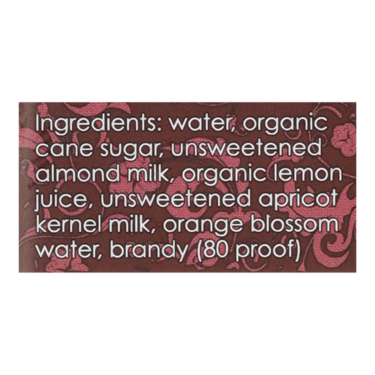 Water, Organic Cane Sugar, Unsweetened Almond Milk, Organic Lemon Juice, Unsweetened Apricot Kernel Milk, Orange Blossom Water, Brandy (80 Proof).