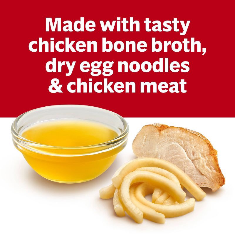 - Soul-warming chicken soup crafted with chicken bone broth, egg noodles, and tender chicken meat with no antibiotics