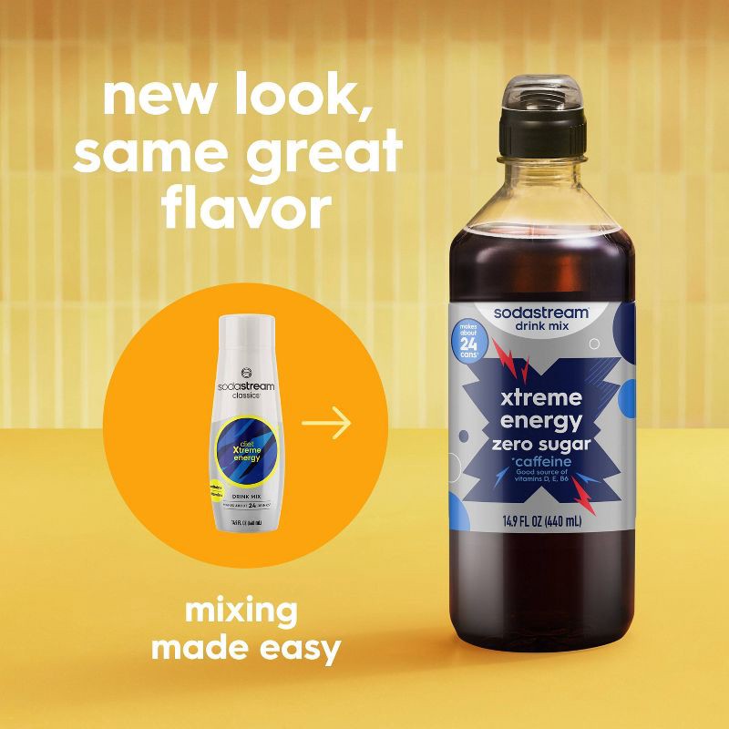 - Includes: (1) 440ml Sodastream® Classics Xtreme Energy Zero Sugar Drink Mix bottles