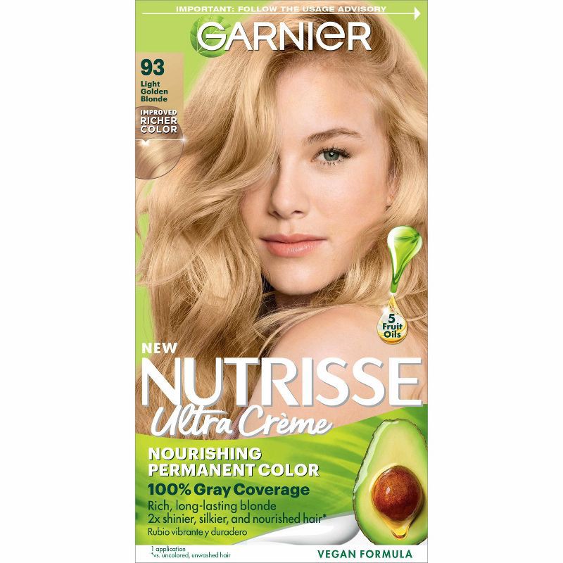 Garnier Nutrisse Nourishing Permanent Hair Color Creme - 93 Light Golden Blonde: Paraben-Free, Sulfate-Free, Aluminum-Free, Includes Gloves