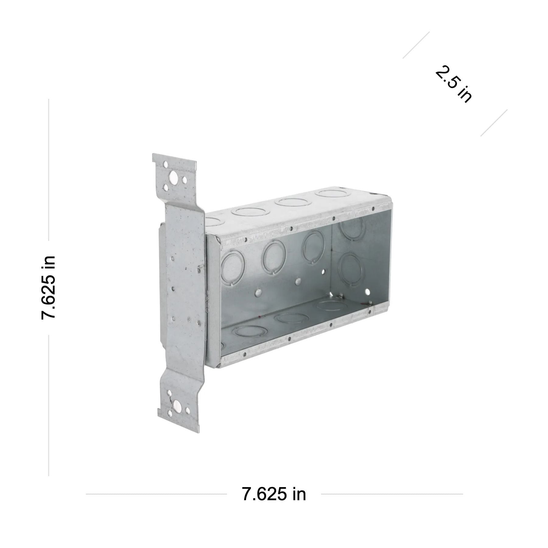 Six 1/2 in knockouts and six 3/4 in knockouts. 4-gang. 2-1/2 in depth. Welded construction. 63.5 cu in capacity. cULus Listed.