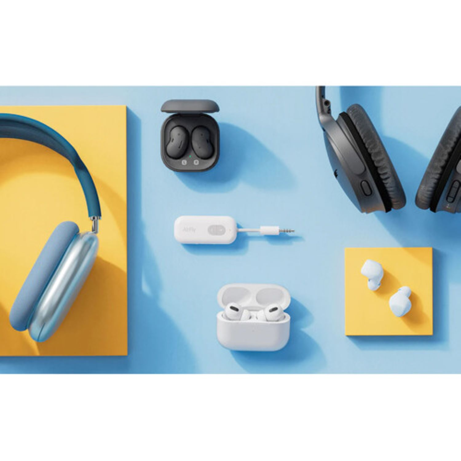 Plug into any audio jack to use wireless headphones or earbuds in places that only have a headphone jack, like airplanes and treadmills.