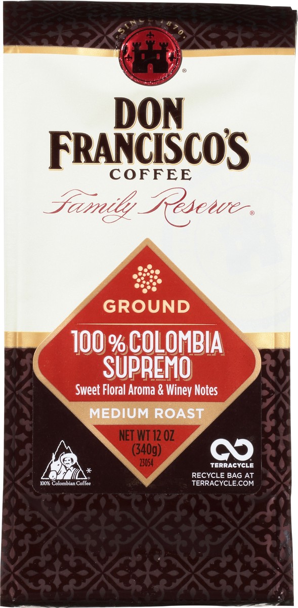 Don Francisco's 100% Colombia Supremo Ground Coffee 12 oz Bag