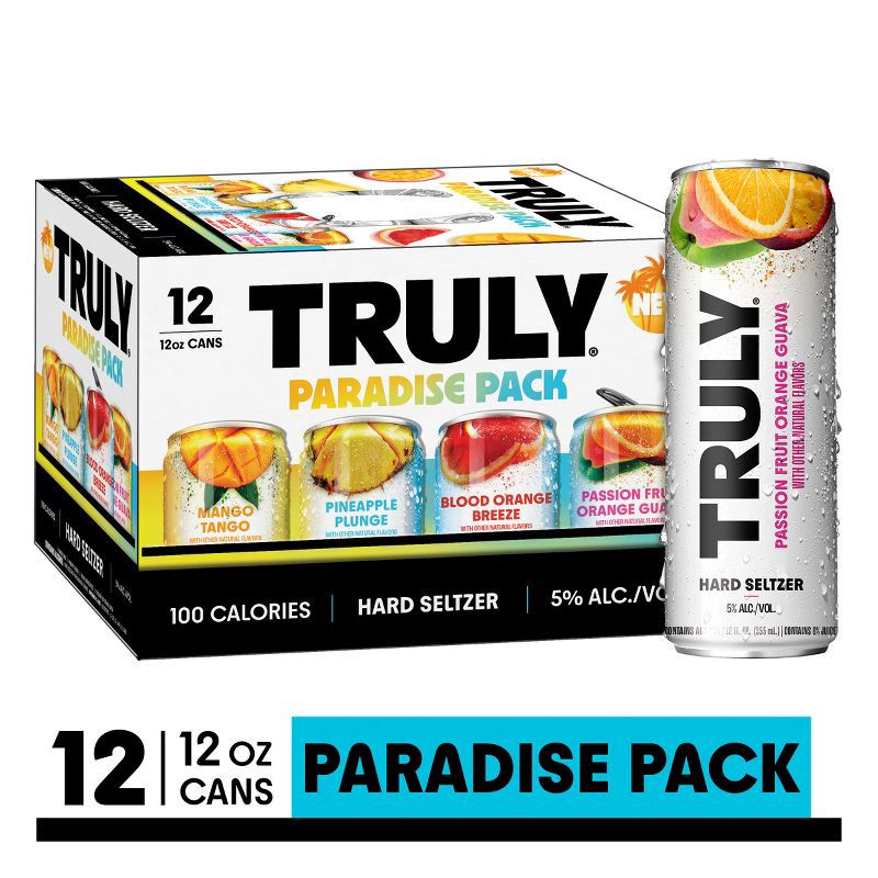 Escape to the tropics without a passport. The TRULY Hard Seltzer Paradise Pack brings bold, refreshing island flavor to your cooler with four sunny, fruit forward hard seltzers: Passionfruit Orange Gu…