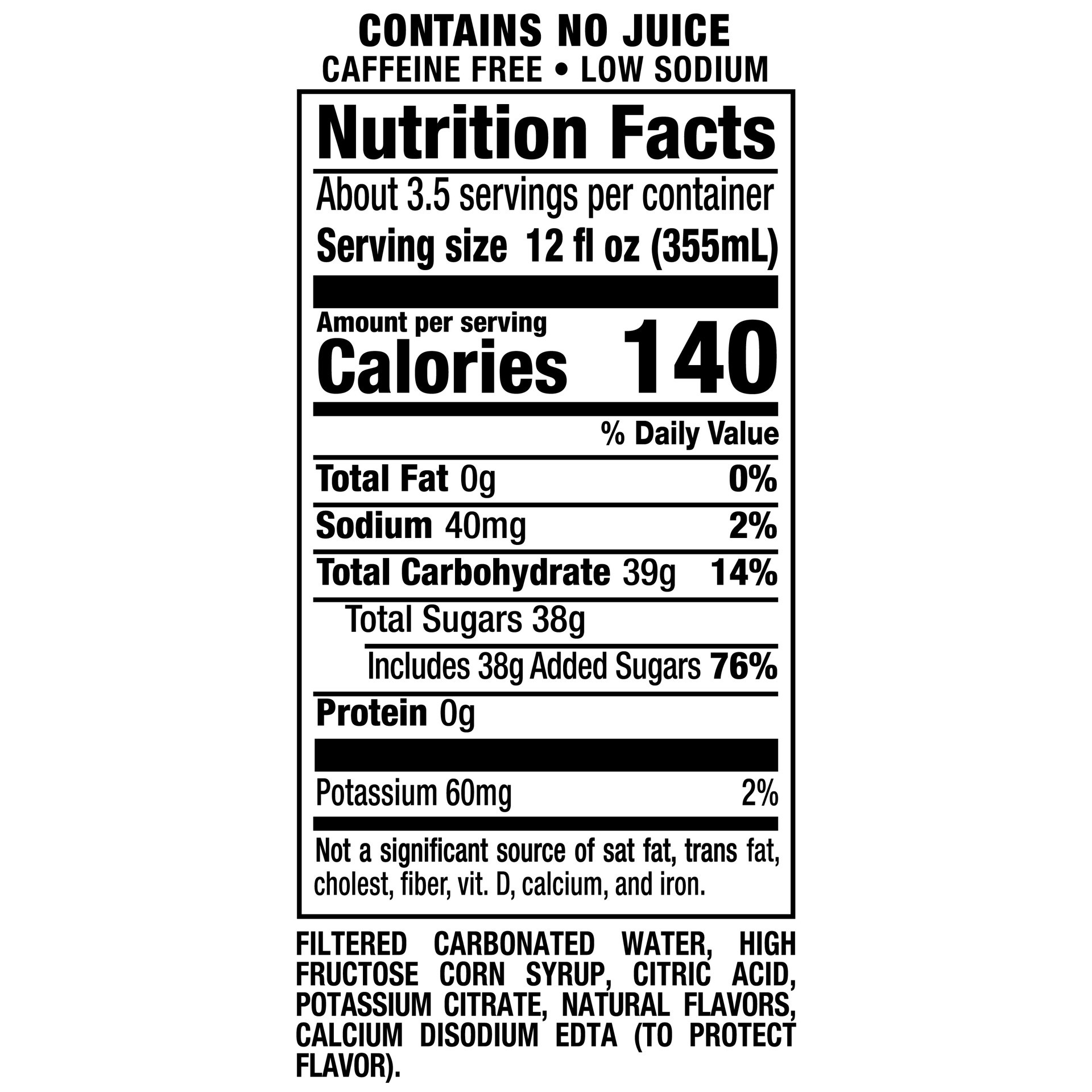Filtered Carbonated Water, High Fructose Corn Syrup, Citric Acid, Potassium Citrate, Natural Flavors, Calcium Disodium EDTA (to Protect Flavor).