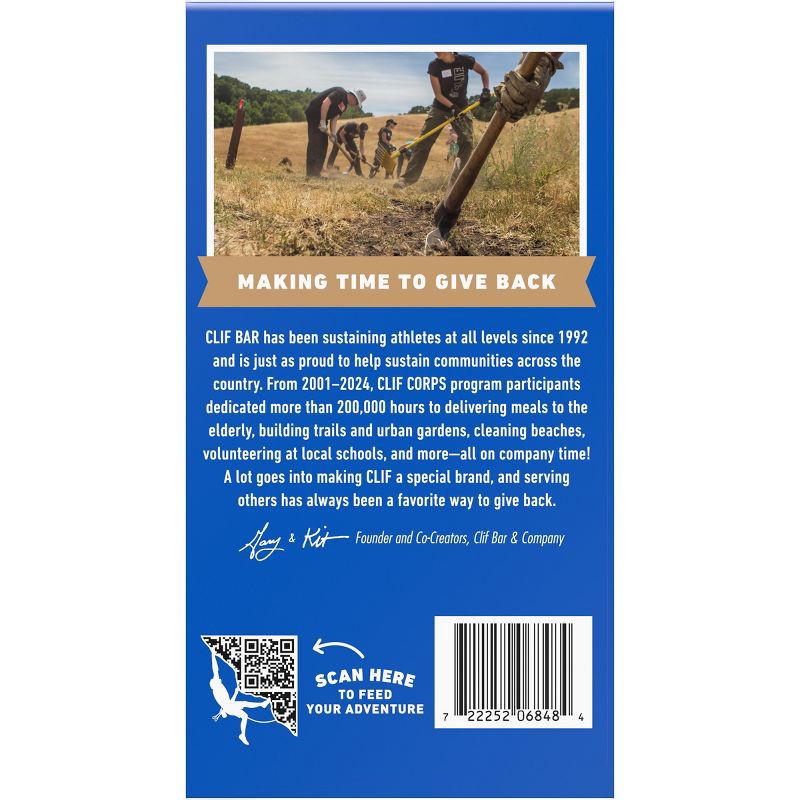 - SUSTAINED ENERGY: CLIF BAR is purposefully crafted with a mix of protein, fat, and carbohydrates to sustain active bodies before and during long, moderate-intensity activity