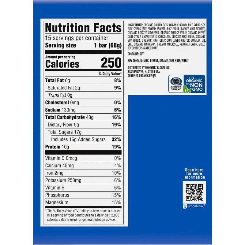 Organic Rolled Oats, Organic Brown Rice Syrup, Soy Rice Crisps (Soy Protein Isolate, Rice Flour, Barley Malt Extract), Organic Roasted Soybeans, Organic Tapioca Syrup, Organic Invert Cane Syrup, Unswe…