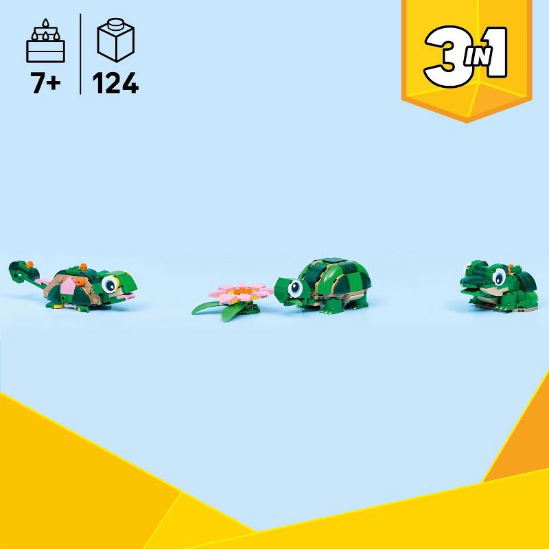 - 3 IN 1 TOY FOR KIDS – LEGO Creator 3 in 1 Turtle with a Water Lily Flower (31377) building toy lets girls and boys ages 7 years old and up construct 3 animal toys from 1 set of LEGO bricks