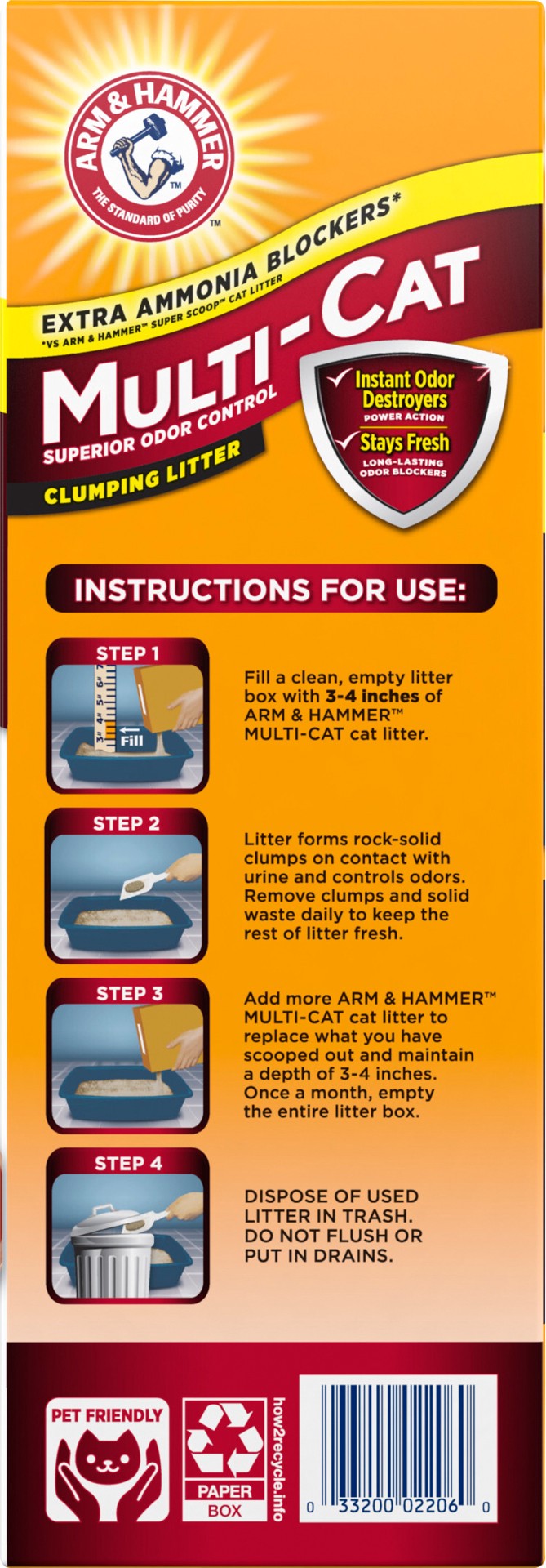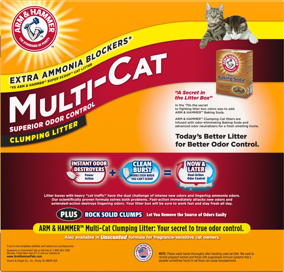 ARM & HAMMER Multi-Cat Clean Burst clumping scented litter has a fresh and clean scent that helps refresh litter with every scoop. This cat litter combines powerful ammonia neutralizers and baking sod…
