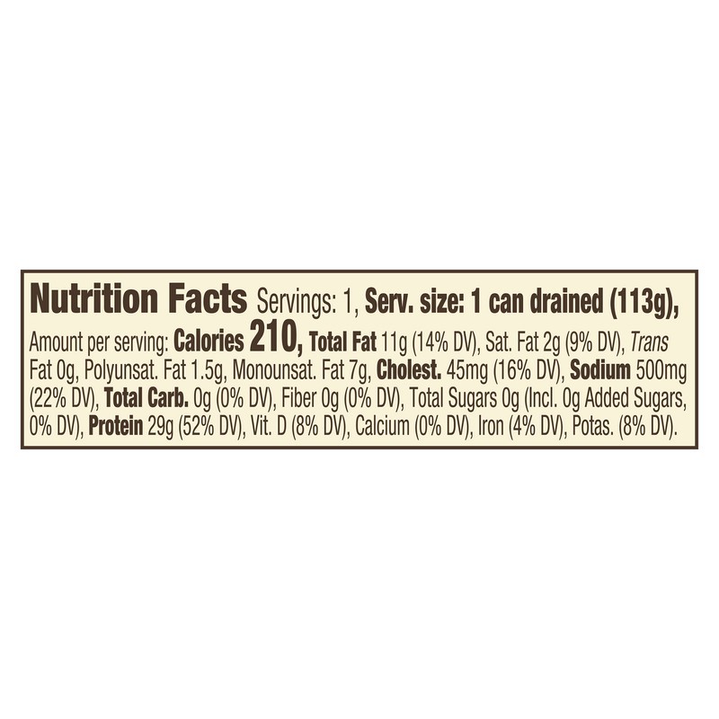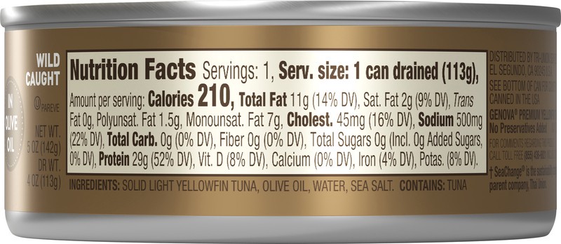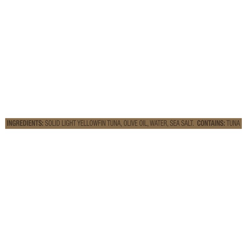 Solid Light Yellowfin Tuna, Olive Oil, Sea Salt.