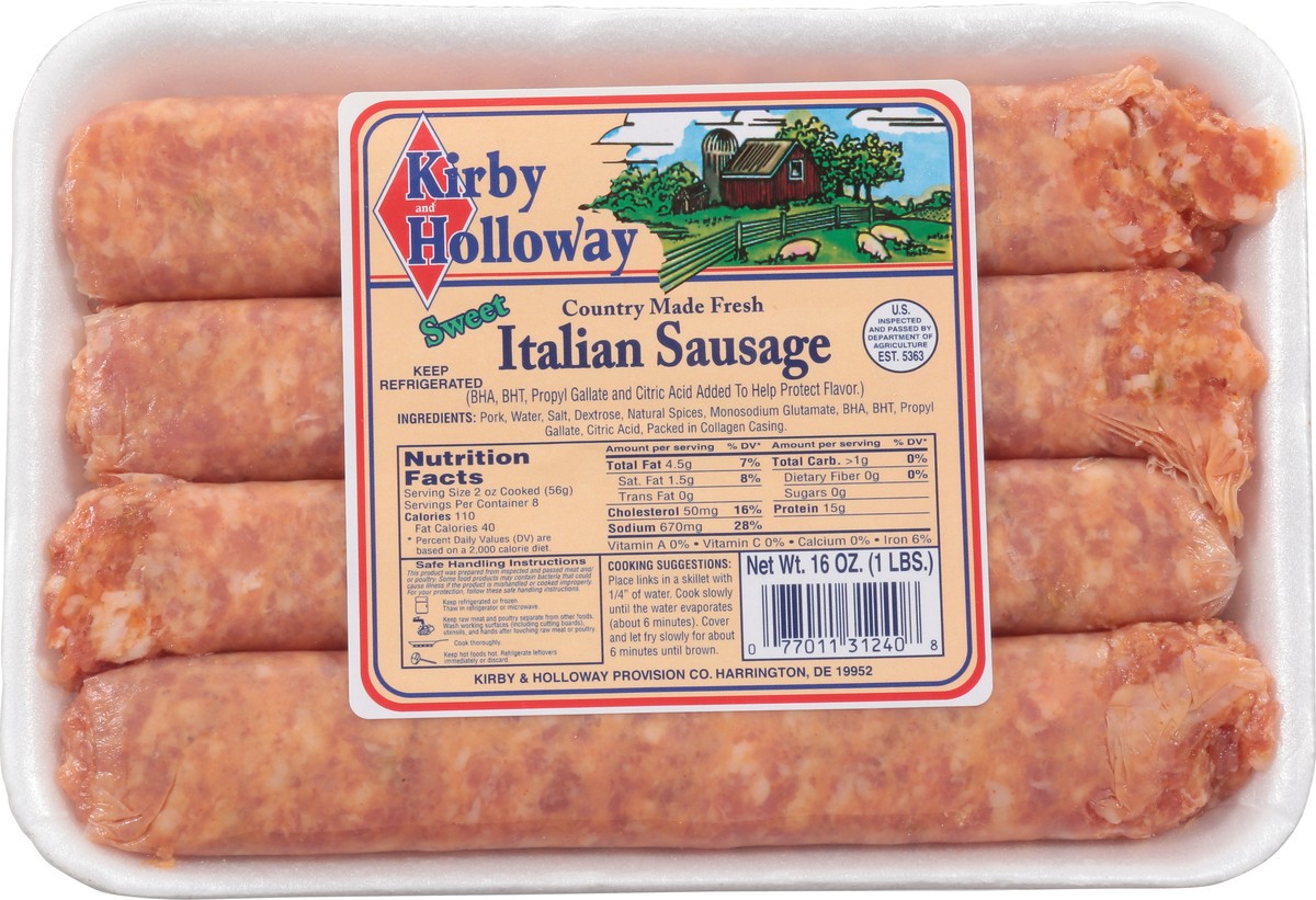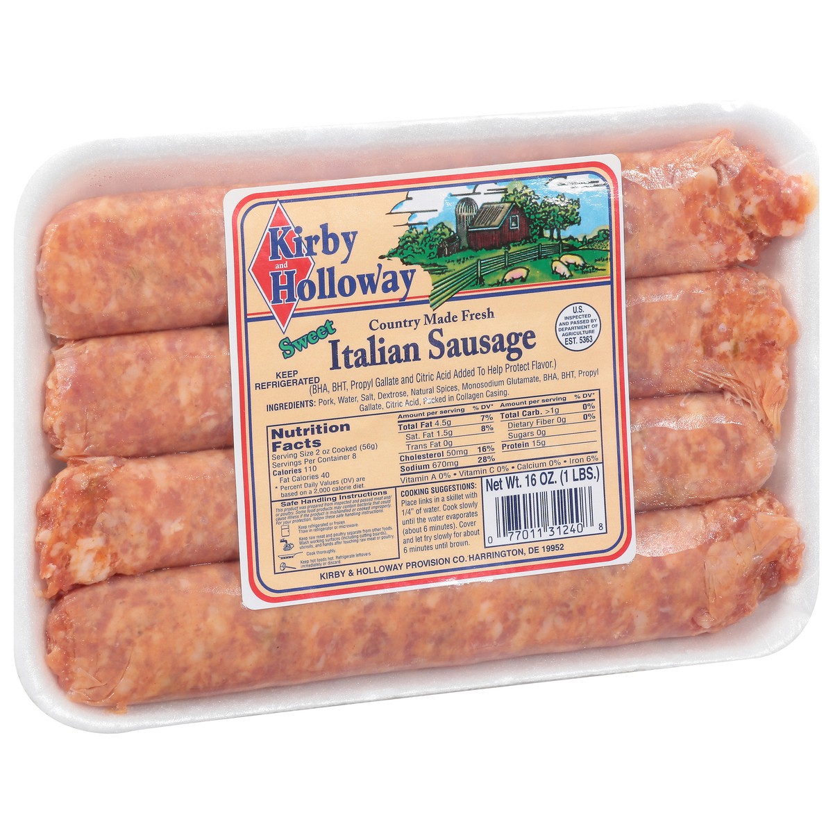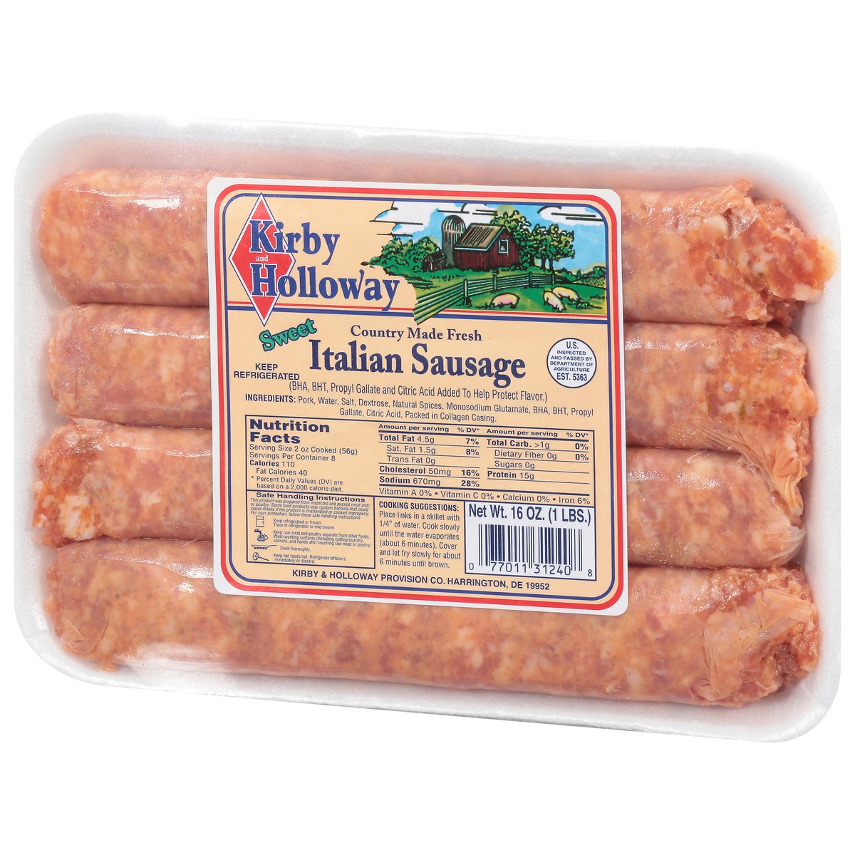Country made fresh Italian sausage. BHA, BHT propyl gallate and citric acid added to help protect flavor.