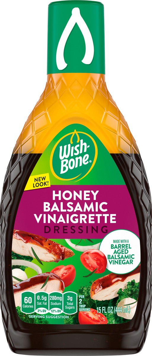 Wish-Bone Vinaigrettes Honey Balsamic Dressing adds bold flavor to all your favorite dishes. Made with barrel aged balsamic vinegar, this honey balsamic salad dressing offers a rich, complex flavor. W…