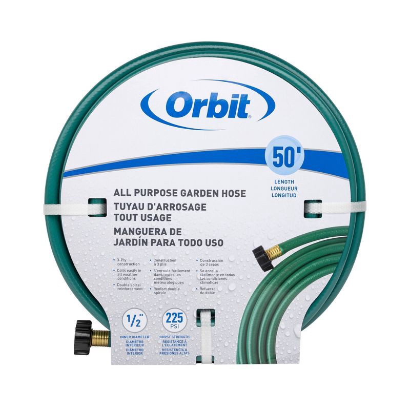 The Orbit light-duty hose is the perfect flexible, lightweight option for everyday tasks like watering plants and washing cars. This hose features 3-ply construction and double spiral reinforcement. T…