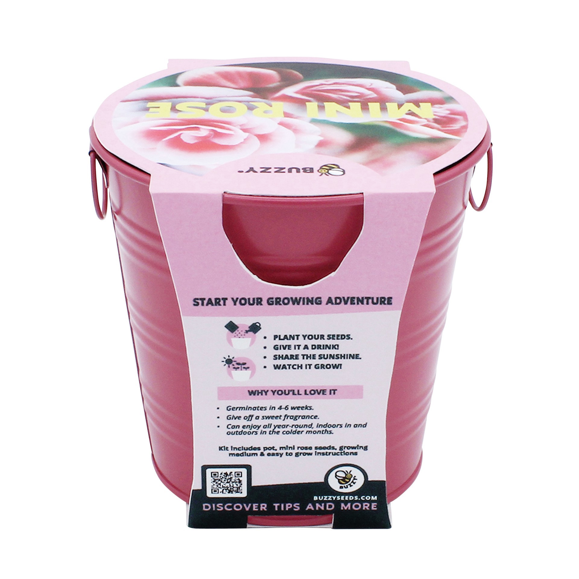 Purchase the Buzzy Mini Rose Pail Complete Grow Kit at Michaels. With a grow pail, seeds, an easy-to-use coconut husk growing medium, and step-by-step instructions, you can have a mini rose plant in f…