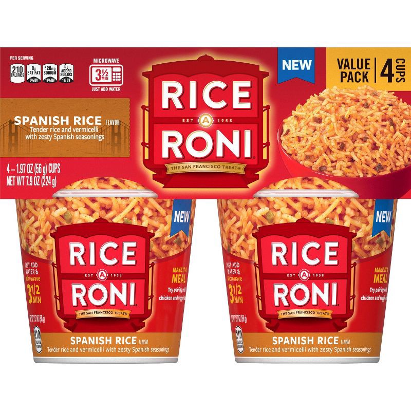- Includes 4 (1.97 oz) cups of Rice A Roni Cups, Spanish Rice flavor