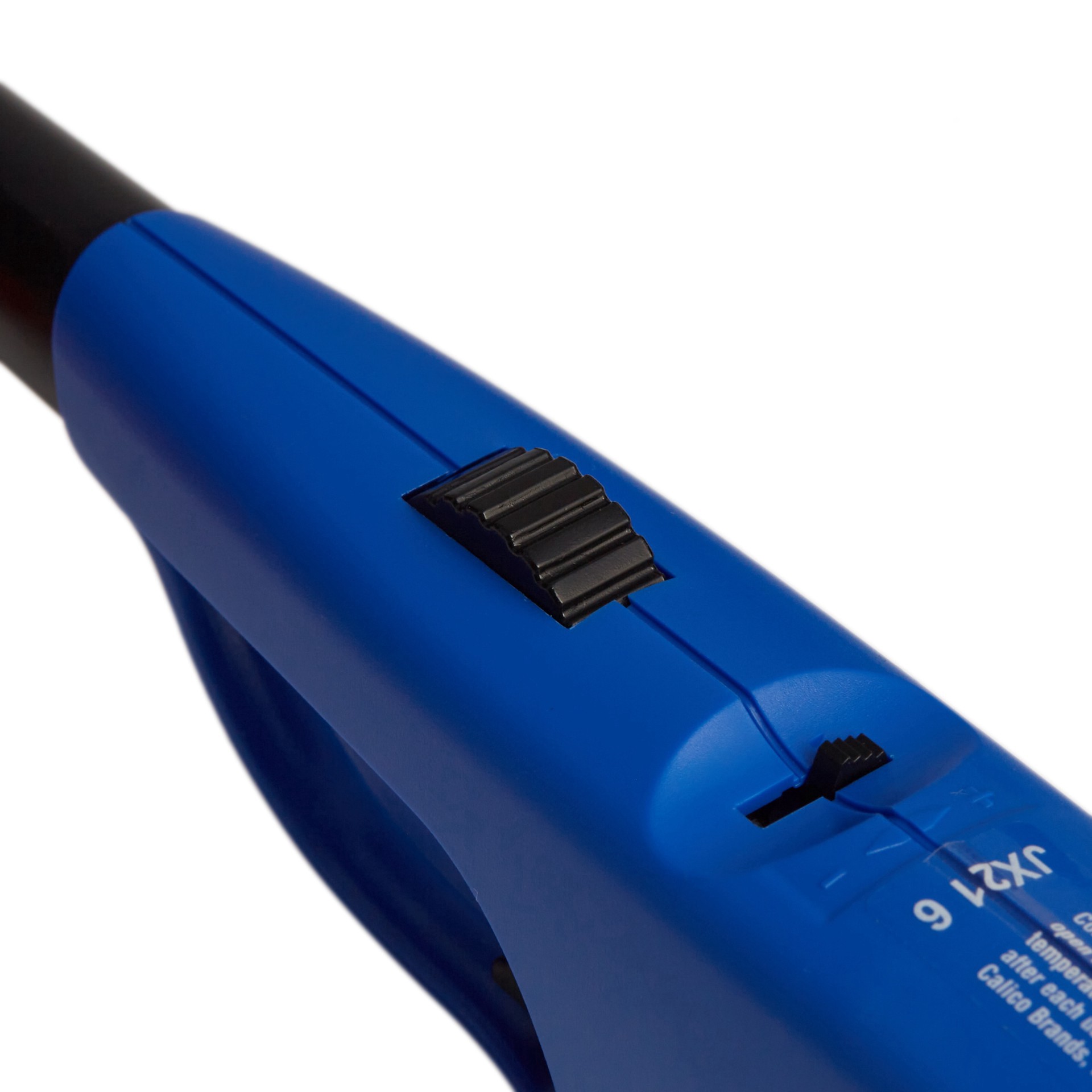 Adjustable flame. Child-resistant mechanism. Visible fuel supply. Convenient hanger to store out of reach of children.