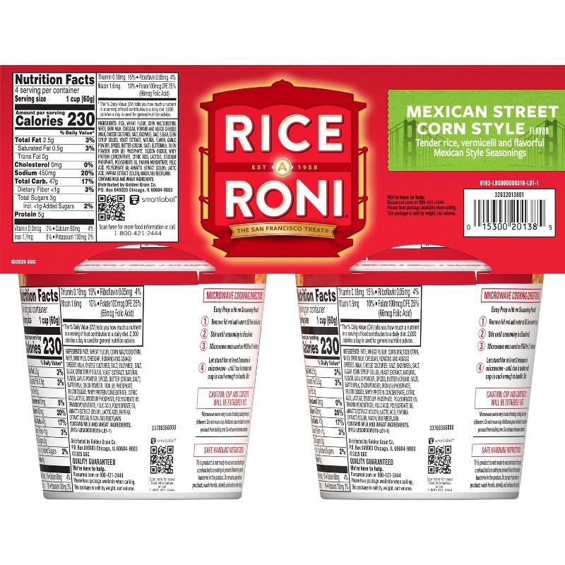 - Includes 4 (2.11 oz) cups of Rice A Roni Cups, Mexican Street Corn Style